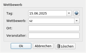 durchgestrichen). Wählen Sie anschließend die zugewiesenen Fahrfläche und das Kampfgericht.